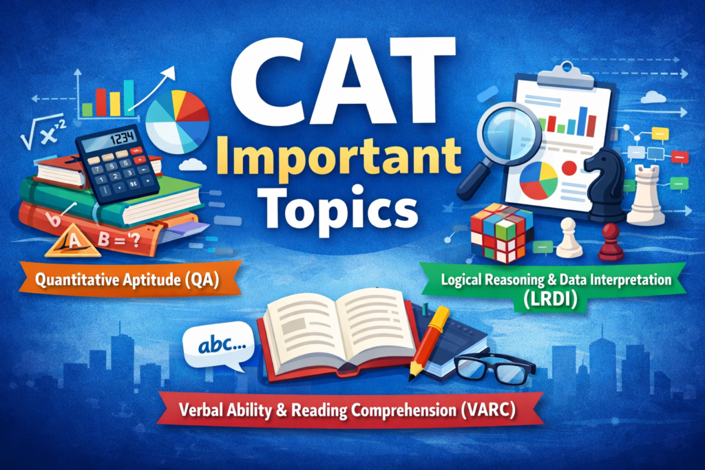 Every year, 2-3 lakh students appear for the CAT exam. They want to get into India’s top management institutes, such as the Indian Institutes of Management (IIMs) and other top business schools. In such a competitive scenario, preparing for the CAT exam with clarity and strategy is more important than just knowing the CAT syllabus. This is a one-stop solution for CAT 2026 aspirants. It discusses the most important topics in VARC, DILR, and QA. It also discusses the topic relevance and preparation strategy.