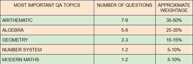 -> Arithmetic and Algebra should be the first focus areas as they carry a heavy weightage in the QA section.