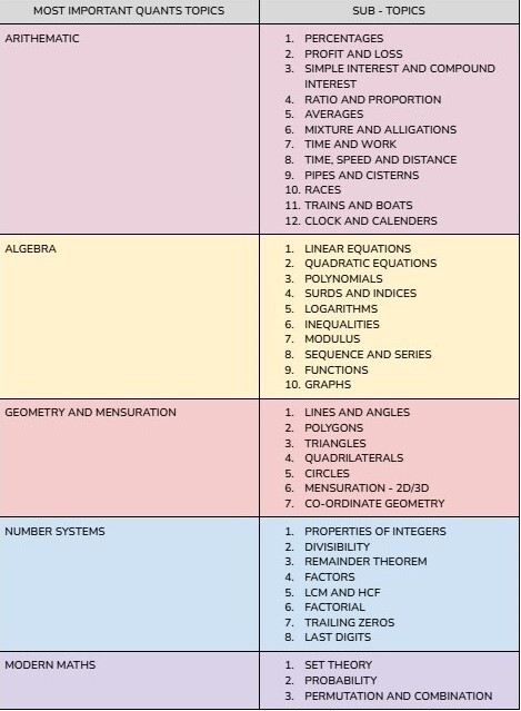 CAT Quants Syllabus: Topic-Wise Weightage